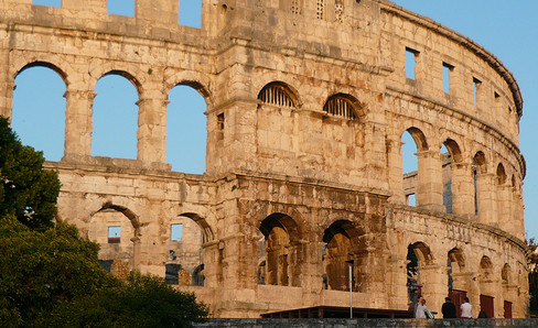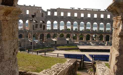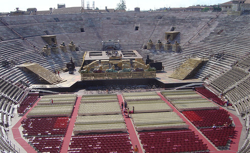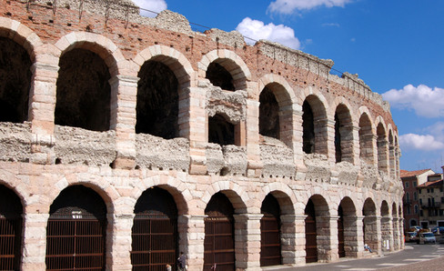 Only four of its sections have been completely preserved. The arches and the ends of its outer walls were built in cut stone, but its inner walls were made of stones from the Adige river, the most common local material. In the middle of the arena, there is still a large basin that was used for nautical shows.