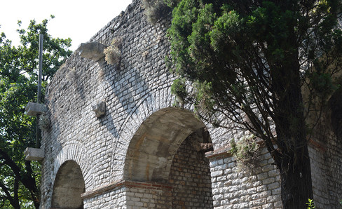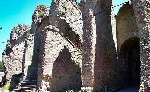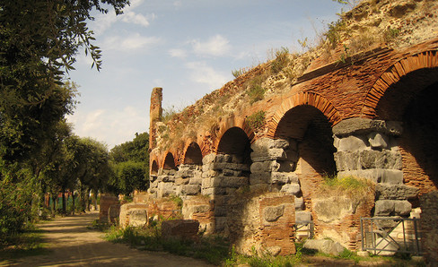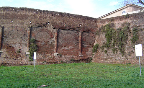 Built of brick, the Castrense amphitheater is one of the two amphitheaters (along with the Colosseum) that have survived in Rome. It was reserved for the emperor and his hosts. Today, its remains are in the Monastic garden of the Basilica of the Holy Cross in Jerusalem, which make them inaccessible to the public.