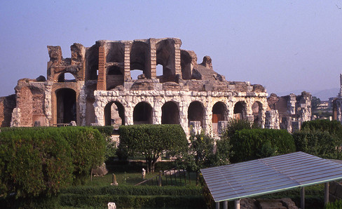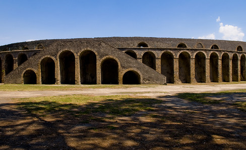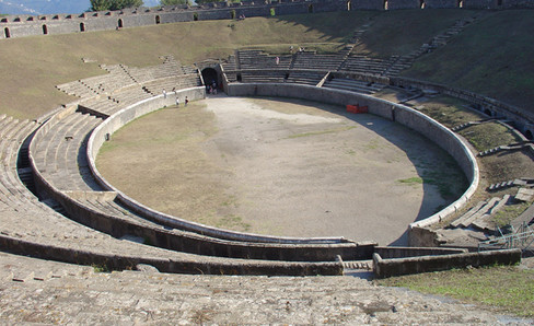 The Pompeii Amphitheater is the best preserved and the oldest of the first amphitheaters. It is an illustration of the passage from the old plan, inherited from temporary installations on the forum to the new elliptical form.