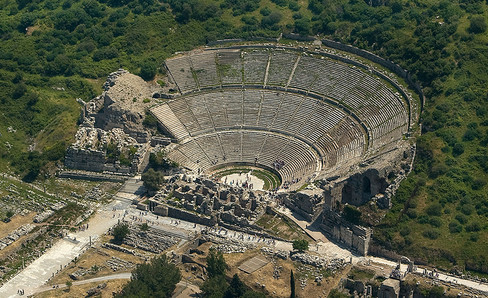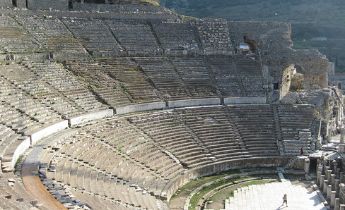 In Ephesus, as in other cities in the Eastern Roman Empire, the original Greek theater was modified in Roman times to be able to accommodate the shows specific to the amphitheater, as well as the repertory of traditional theater.