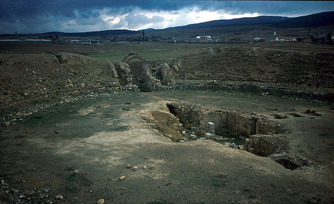 The base of the seating, which seems to be the cavity of an already exploited quarry, is cut directly into the rock. Stretched and rounded at its far ends, the arena is not in the traditional from of an ellipse. The podium wall featured a protective net, which was installed on wooden posts, and probably used during the wild animal hunts.