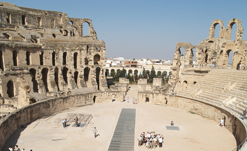 The Great amphitheater of El Jem is the most famous Roman monument in Tunisia, and the best preserved amphitheater in North Africa. Its three-level façade imitates that of the Colosseum. Its good state of conservation has made it possible to completely reconstitute its inner functioning (how the spectators moved, the network of sewers, and its underground rooms).