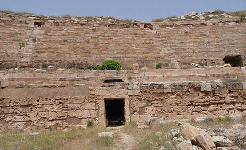 This is a rather small amphitheater, but built entirely of large cut stones. It is at the top of a hill into which part of it was dug. It is one of a series of African amphitheaters built similarly during the same period.