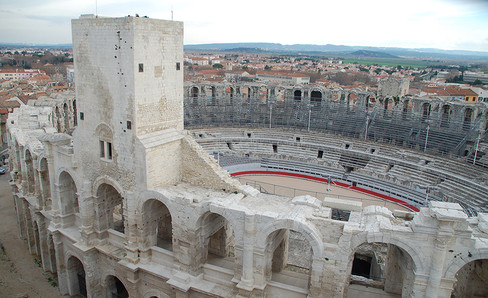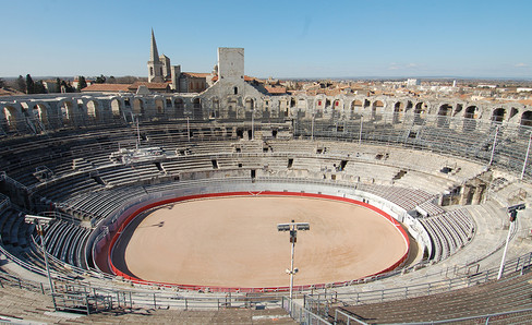 Inspired by the Roman Colosseum, it was the model for the Nîmes Amphitheater. From the Middle Ages to the 19th century, the two monuments were transformed into a fortress then a residential neighborhood. Contrary to Nîmes, the Arles Amphitheater did not preserve its upper attic level. The current level of the arena floor is that of the original understage area below ground level.