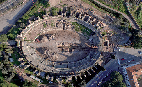 This is the second largest amphitheater after the Colosseum. Its subterranean passages have been entirely preserved, so we can observe its rainwater harvesting system, through which water flows into large tanks, how the hoists operated, the trapdoors of the cages, and the rooms where wild animals were kept.