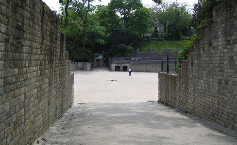 The Lutetia Amphitheater is one of the rare examples of a "mixed" monument located in an urban setting. The cavea, located on a hillside, was in the shape of a horseshoe. The area for shows was elliptical. The edifice also included a scene wall which has been hypothetically reconstructed.