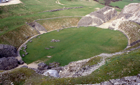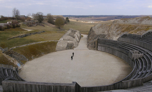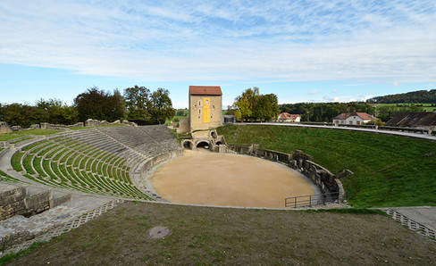 This is one of the mixed edifices observed in Celtic Gaul. Its semi-circular cavea is similar to that of a theater, but it is combined with an elliptical arena. Between 1993 and 1995, seating made of rot-proof material was installed to protect the masonry of the west part from bad weather.