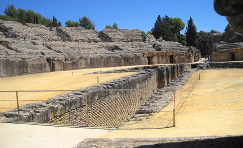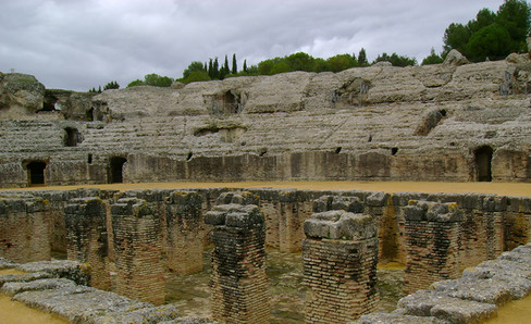There was a small chapel in the Italica Amphitheater, which is one of the largest. The chapel has been identified on several other sites as a place of worship to Nemesis, a goddess venerated by the gladiators and animal hunters. Naumachiae (naval battles) could be held in this edifice.
