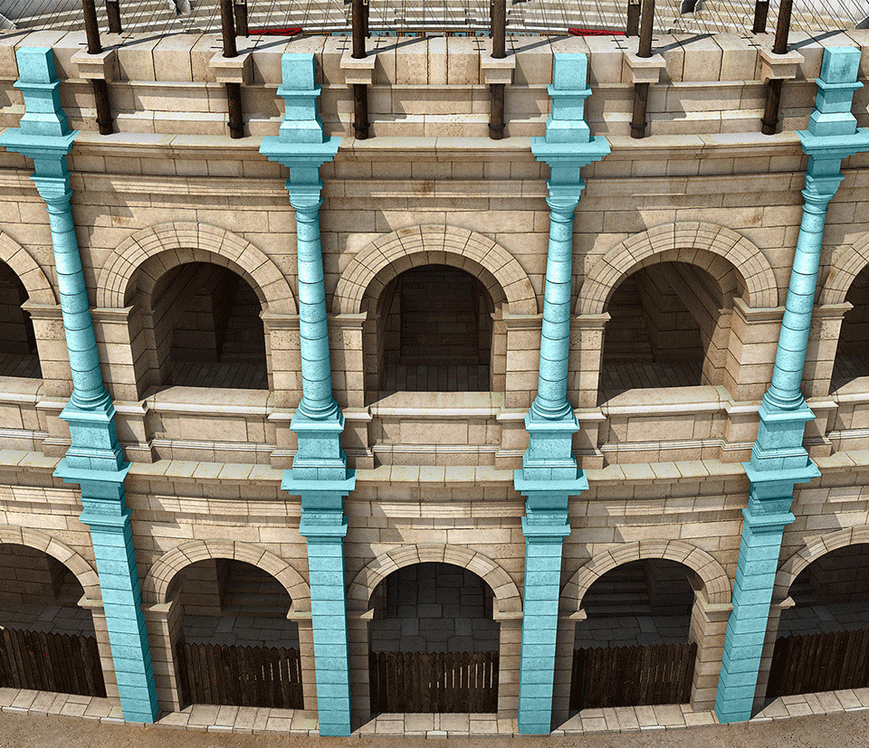 Il a été repris pour le Colisée, avec un niveau d’arcades en plus.